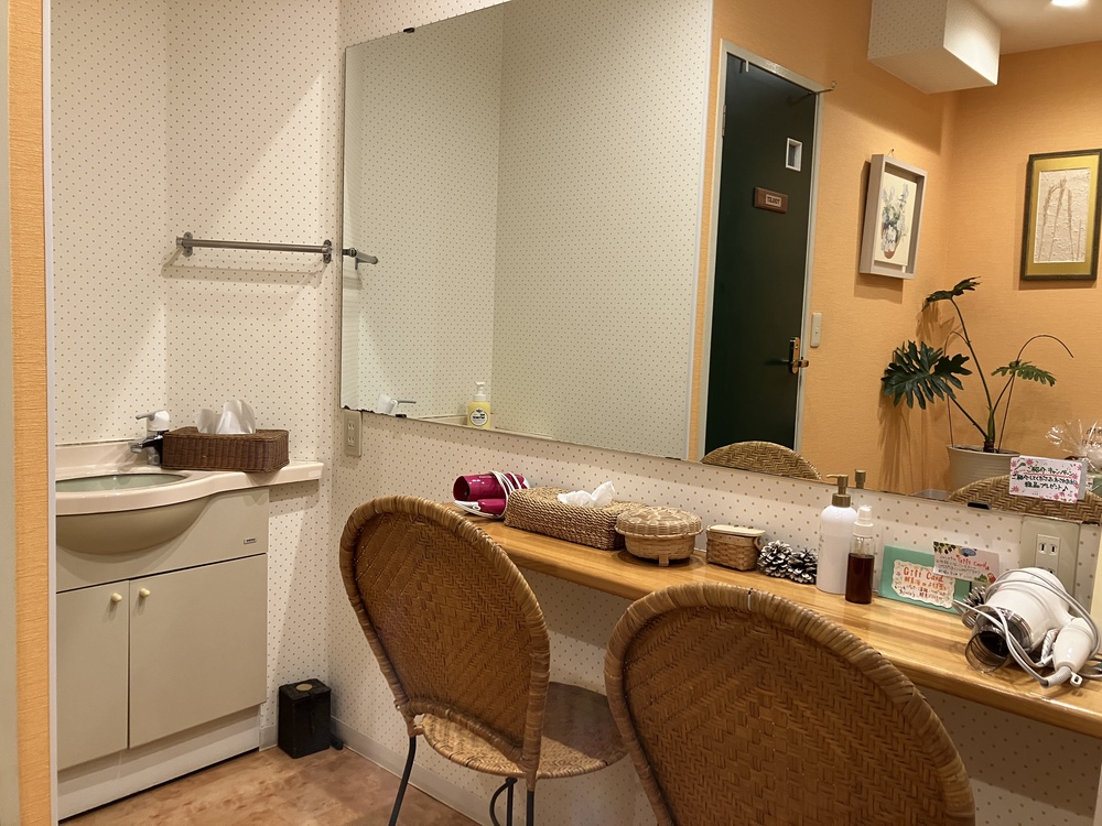 シャワー後はドレッサーで身支度。クレンジングや化粧水が用意されています。