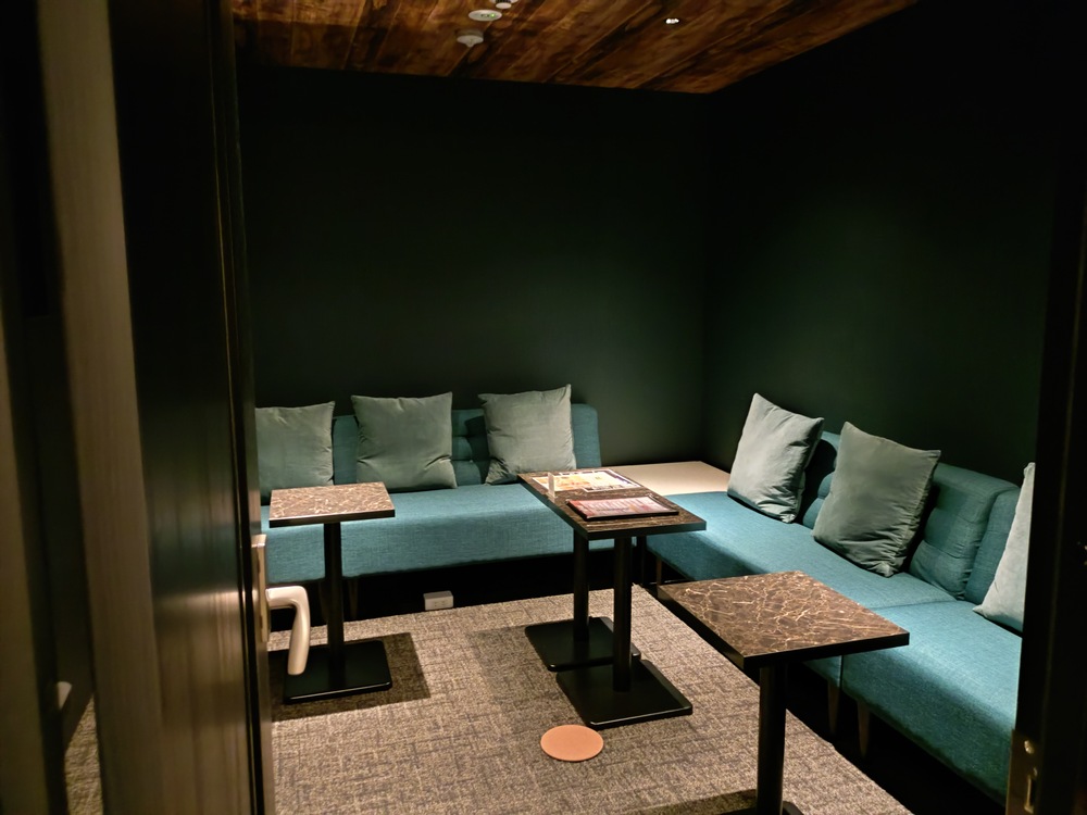 こちらの個室は7~8人入ってもゆったり過ごせるので、気の合う仲間同士で語らう場所にぴったりです。