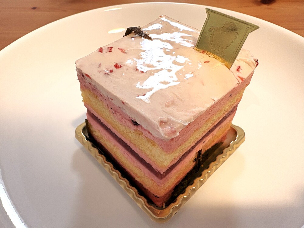 こちらは桜風味のムースに、いちごのジュレを組み合わせたケーキ。