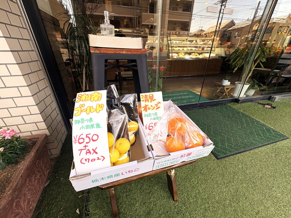 店舗入り口にはさっそく地場のフルーツが(笑)。