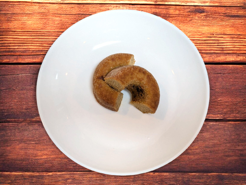 砂糖がまぶしてあり、一口目は普通のドーナツに比べあっさりした感じでしたが、あとから砂糖の優しい甘さがじんわりと広がり、幸福感を高めてくれます。