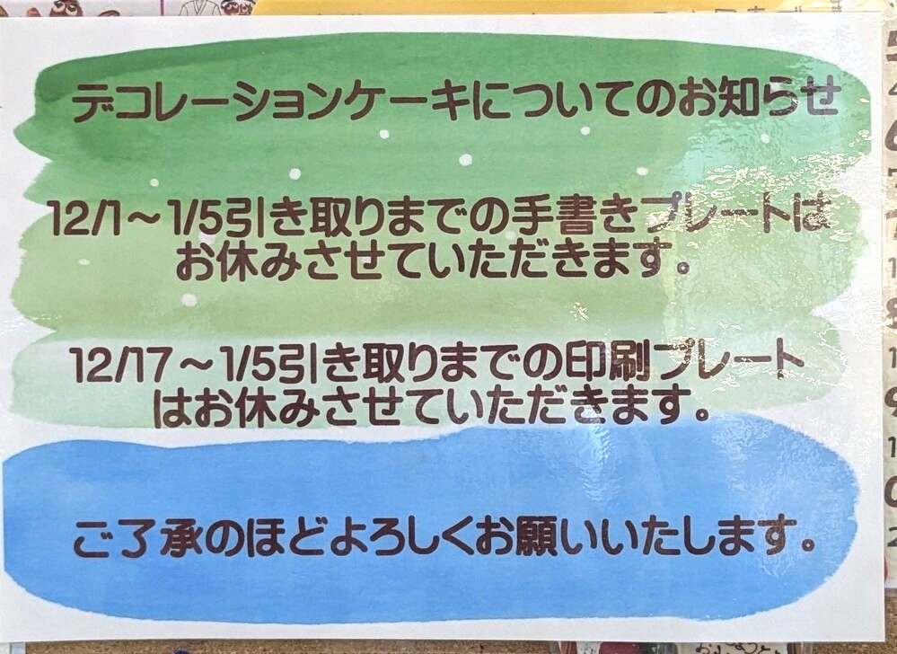 12月からのクリスマス期間中は、通常のオーダーメイドケーキの受付を一時休止されています。ご希望の方は余裕をもってご予約くださいね。
