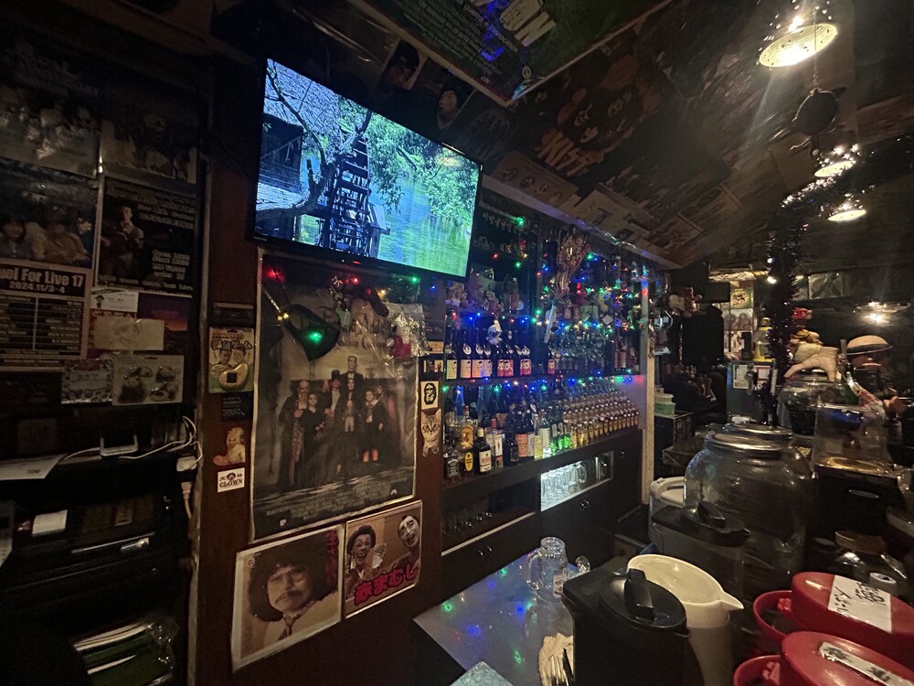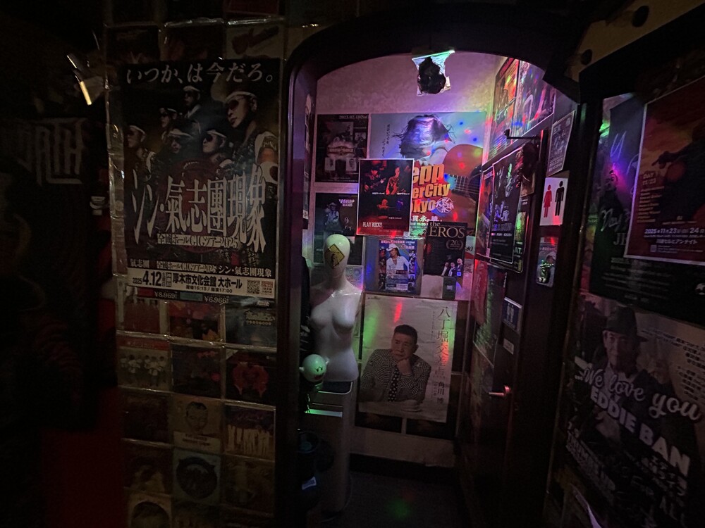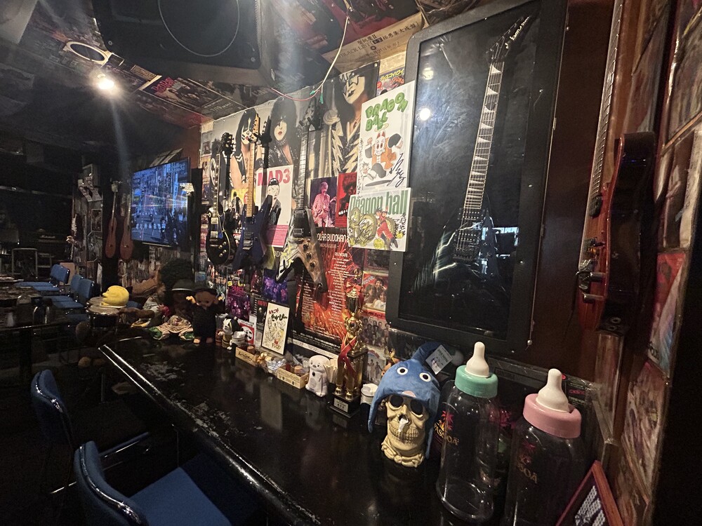 壁や天井を埋めつくすロックアーティストのポスターやCDジャケット。