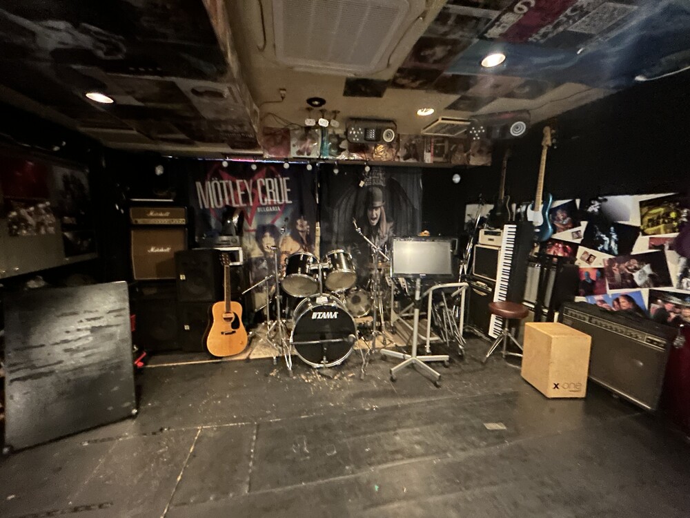 一番奥にはライブの機材が置いてあり、なんとここでライブができるそうです。
