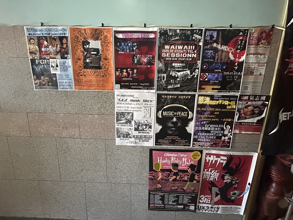 壁にたくさんポスターが貼ってあり、よく見ると近日開催のライブのポスターでした。