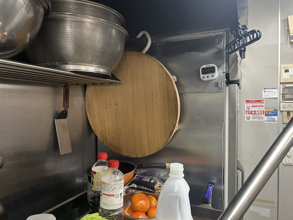 メニューに「羽釜豚骨」とある通り、スープを熟成するこだわりの羽釜と木の蓋がこちら。