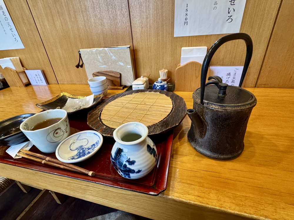 このお店の蕎麦湯入れは、かなり重量感のある鋳物製。