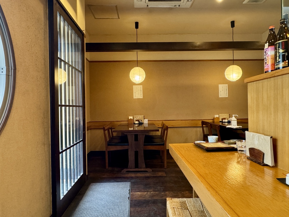 超シンプルな外観をいい意味で裏切ってくれるのが、落ち着いた和空間の店内。
