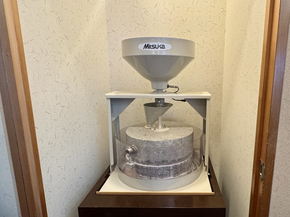 店の奥の石臼はひっそりとしつつも、その存在感をしっかり主張しています。