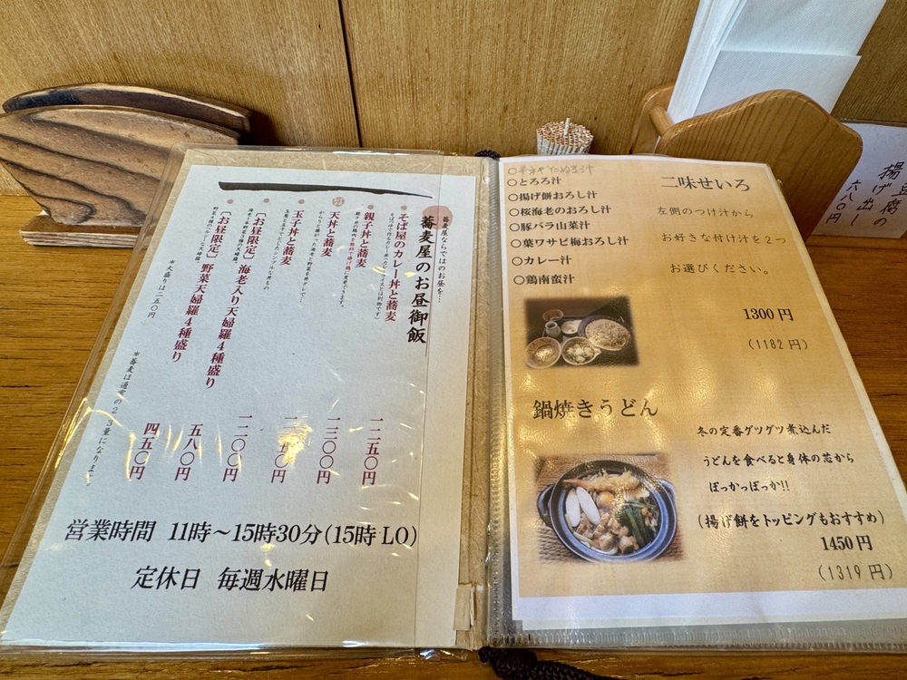 この日は、温かいお蕎麦の気分だったので、メニューをめくって見つけたこれ!