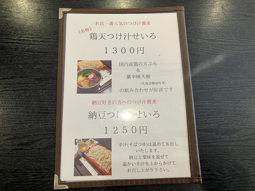 つけ汁蕎麦も人気のようです。名物の鶏天もおいしそう。