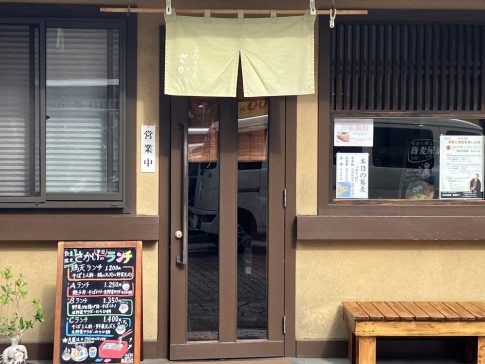 店の前には手書きのランチ看板が置かれており、温かみのある文字が目を引きます。