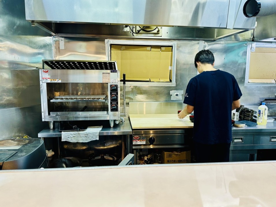 スタッフの方の手際の良さを眺めていると、フライを揚げる音が聞こえ、ほんのりとお魚のいい香りも漂ってきます。