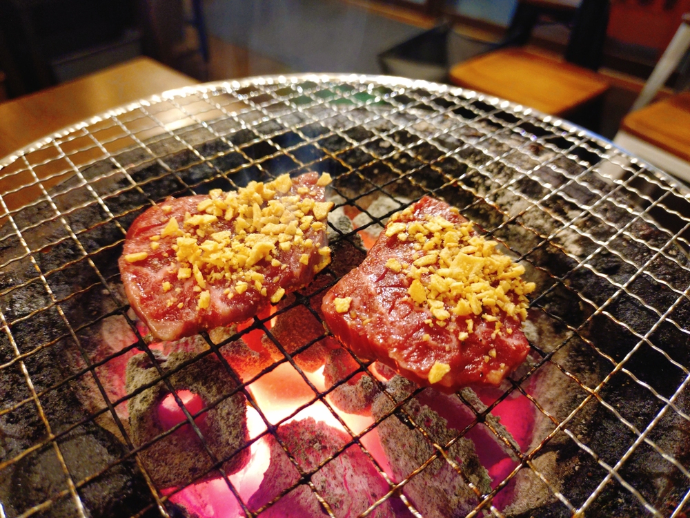 カリッとしたガーリックチップと、ジューシーに焼きあがるハラミ。七輪焼きの良さが存分に引き出されており、思わず「ヤバ、うま……」と一瞬言葉を失いました。