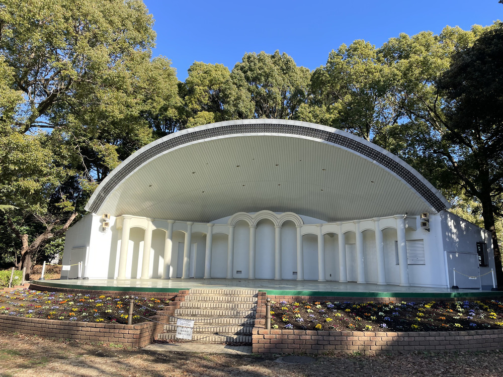 野外音楽堂は平成広場に隣接している施設です。自然に囲まれたステージで、開放的な雰囲気が印象的でした。