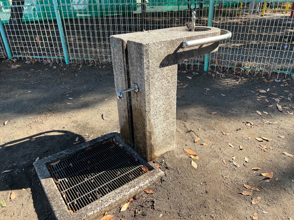 水飲み場と手洗い場があり、遊んだあとにすぐ手を洗えるので、子育て中の家庭にとってとても助かる存在です。