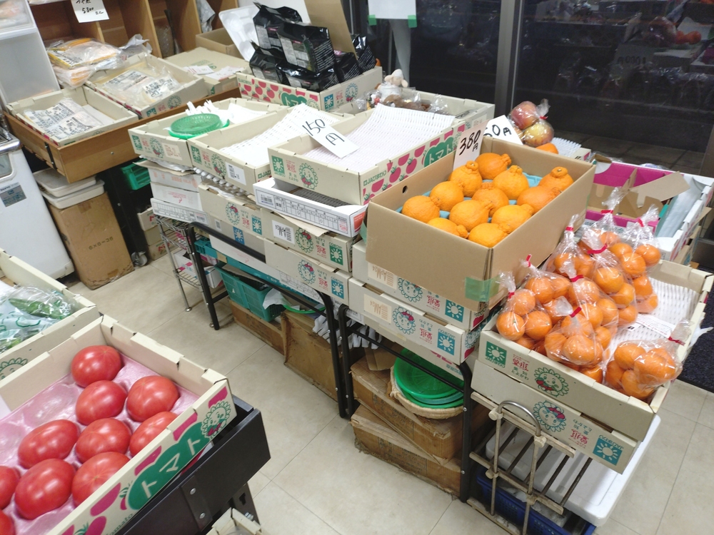 入り口付近や棚には、野菜や果物などの生鮮食品も並んでいます。最近ではコンビニや大型スーパーが主流になり、酒屋さんで野菜を見る機会はずいぶん減りましたよね。でも、こうして季節の食材がさりげなく置かれている風景を見ると、なんだかほっとするんです。