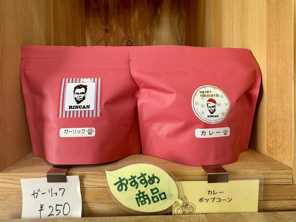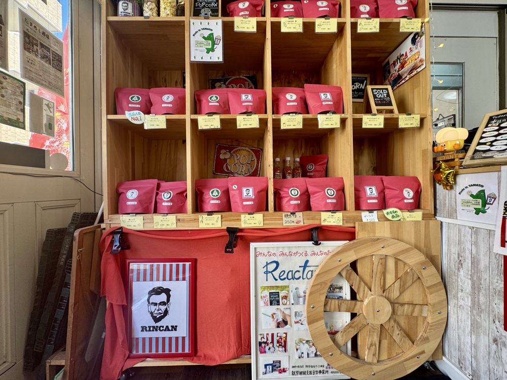 リアクタントの看板商品は、地名とよく似たオリジナルブランド「Rincan(リンカン)」の手づくりポップコーン。