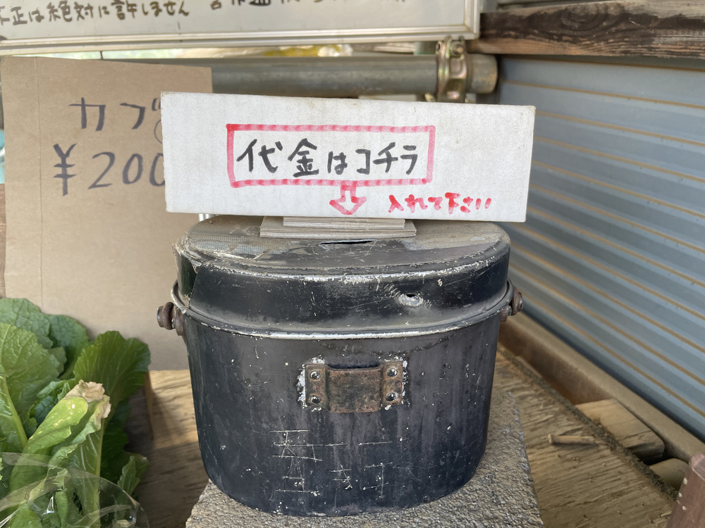 直売所では、畑仕事などで店主が席を外す時間帯に、無人販売が行われています。